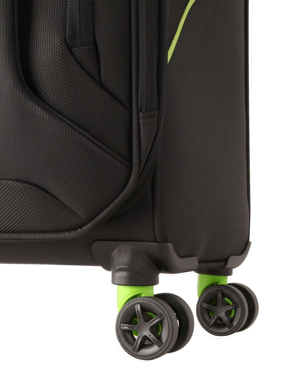 American Tourister Applite is a well-designed soft-sided suitcase range. Instead of being divided in two halves by the zipper, it has full capacity in the bottom, with a lid and can expand beyond this as well. It also has two pockets at the front, one accessible from the side and one from the top. The material is strong yet very light and the interior colours match the exterior accents.